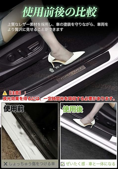 SUVVNE(スヴニ) 新型クラウン 35系 スカッフプレート 夜光 サイドステップガード CROWN 35系 (2022年9月~現行)レザー素材 サイドステップ 防水 防汚れ 防傷 装着簡単 日本語取扱説明書付き 4点セット | KAZESHOP