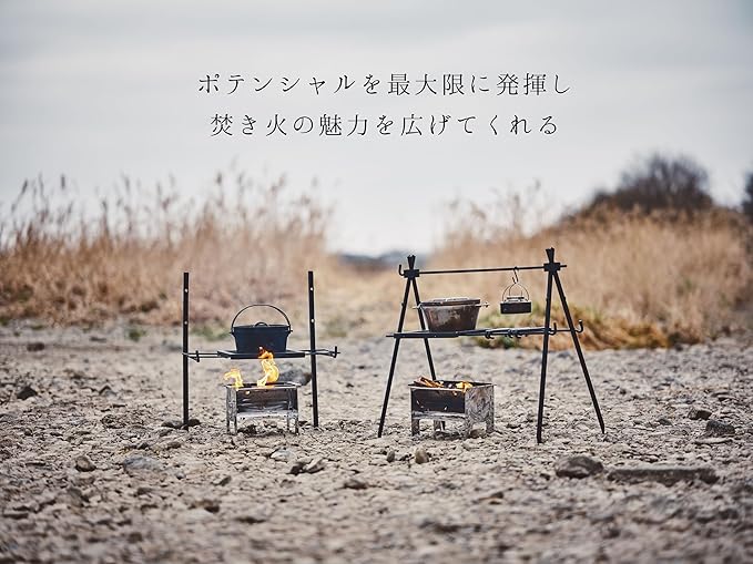 尾上製作所(ONOE) マルチハンガー MH-90 地面に打ち込み、ダッチオーブンなどを吊るして使用可能 4本フルセット/2本/1本使用可能 別売の鉄鋳物グリルと組み合わせ、置くタイプのコンロを作ることも可能 収納バッグ付き 焚き火ハンガー キャンプ | KAZESHOP