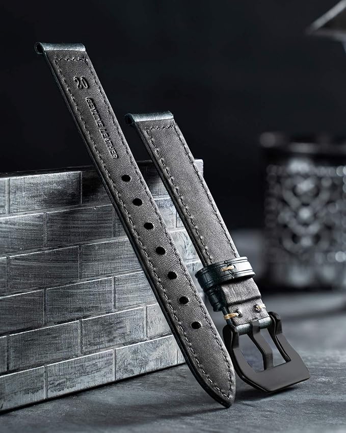 【魅力的な設計】ステンレス製のピンバックルはシルバーとブラックの2色があります。精巧な手縫いは人体工学の設計に適合していて、腕に完璧にフィットします。多孔のデザインで簡単に装着できて、腕の長さに合わせて革腕時計バンドの長さを調節できます。