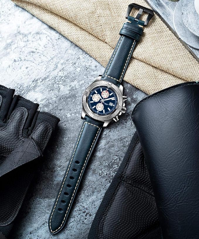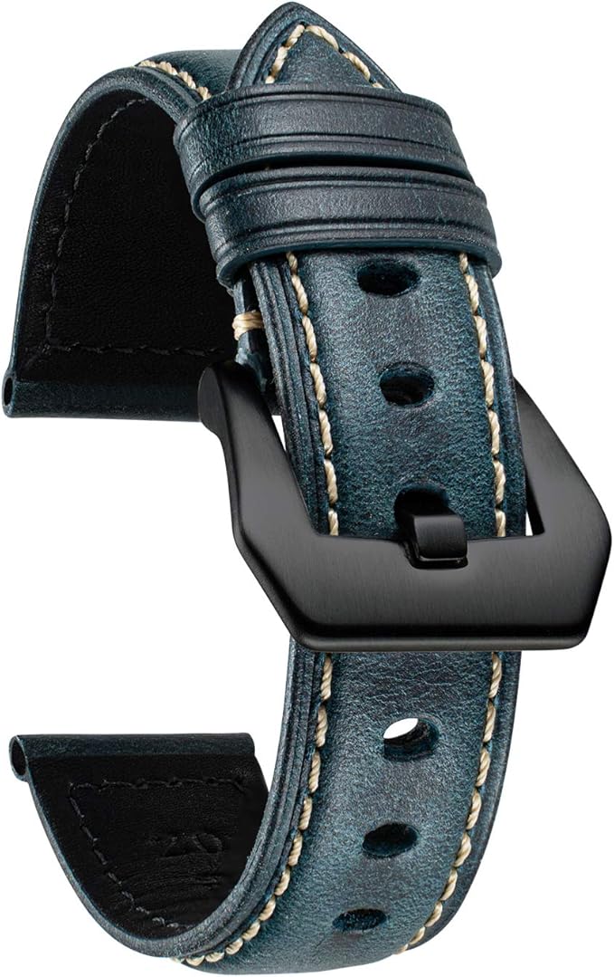 【高品質の材料】この革時計ベルトはオイルワックスの皮革で作られていて、柔らかくて弾力性があり、快適です。裏面は小牛革でできて、柔らかい皮革は防水性と汗防止性が良くて、革腕時計ベルトの寿命を長くします。上質な革は時計バンドに優れた外観とセンスを与え、腕時計に素晴らしい外観をもたらします。