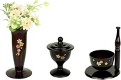 【仏具・花4点セット】・アーティフィシャルフラワー ・花立て ・お水入れ ・おりんセット(おりん+りん棒)