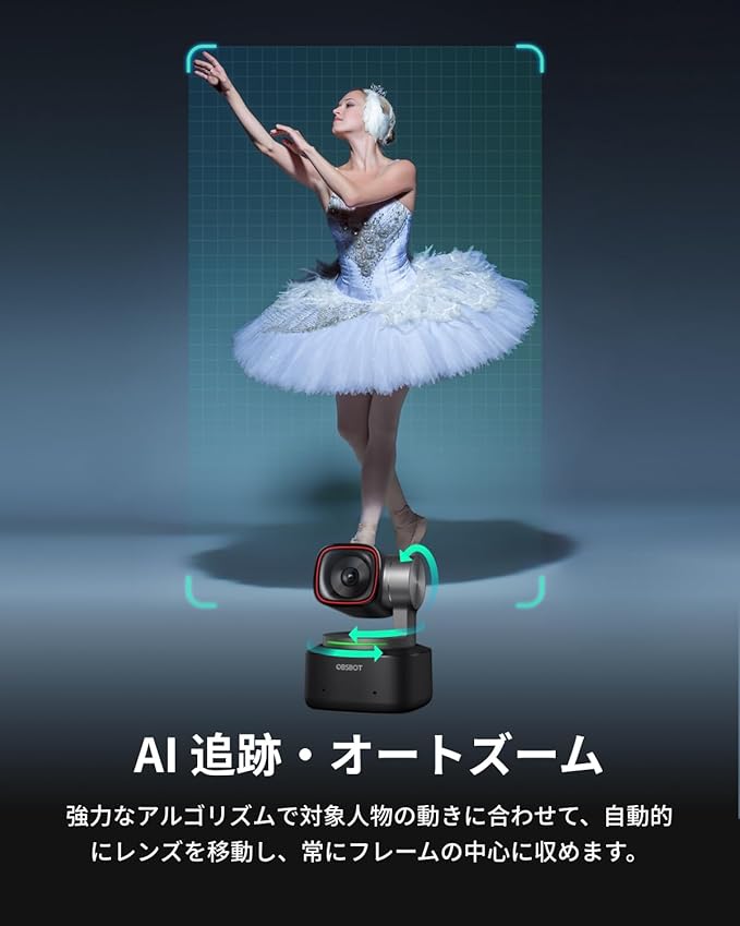 OBSBOT TINY 2 webカメラ AI自動追跡 ウェブカメラ HDR 4K 5000万画素 全画素AF ジェスチャー 音声制御 ノイキャンマイク 会議 ライブ配信 ビデオ通話 PC Mac Windows