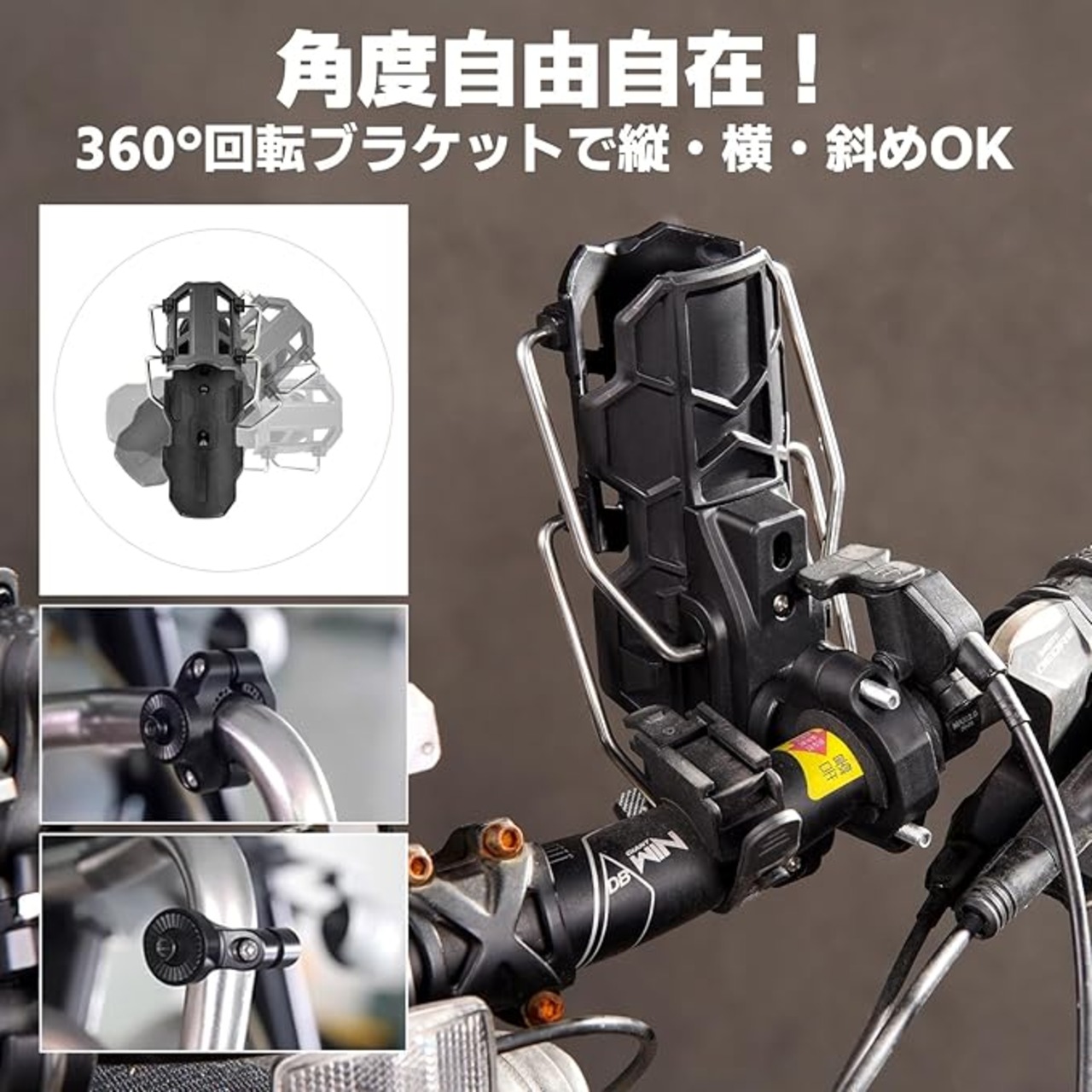 【簡単取り付け】バイクや自転車のハンドルやフレームに簡単に取り付けられます。クランプ式の取り付け機構で、付属の工具で簡単に取り付け可能。