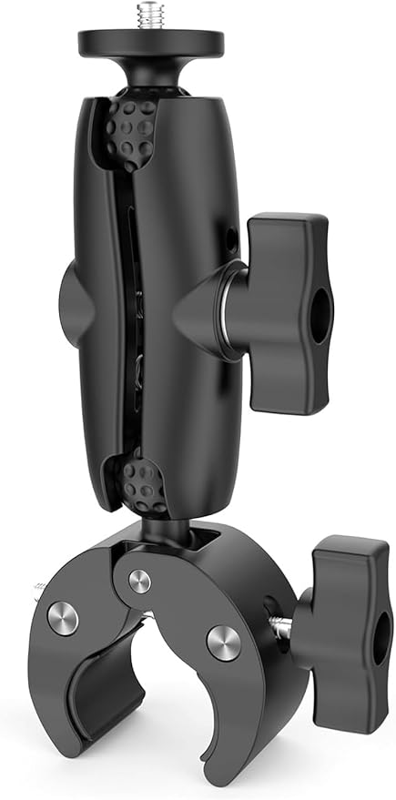●クランプベースとカメラアダプターを繋いでいるソケットアームの3種類がセットになったマウント。 ●ベースはネジを回す事で開閉するクランプ式になっており、直径18~42mmのパイプやデスクトップに固定できます。 ●ベースとマウントのジョイント部は直径1インチのボールヘッドの形状により、360度回転でき、縦向きにも横向きにも自由に調整できます。 ●屋内だけでなく屋外でも使用出来る幅広い用途を持ちます。 ●1インチのボールヘッドに適応したラムマウント製品との組み合わせも可能。 ●乗り物用デバイス固定