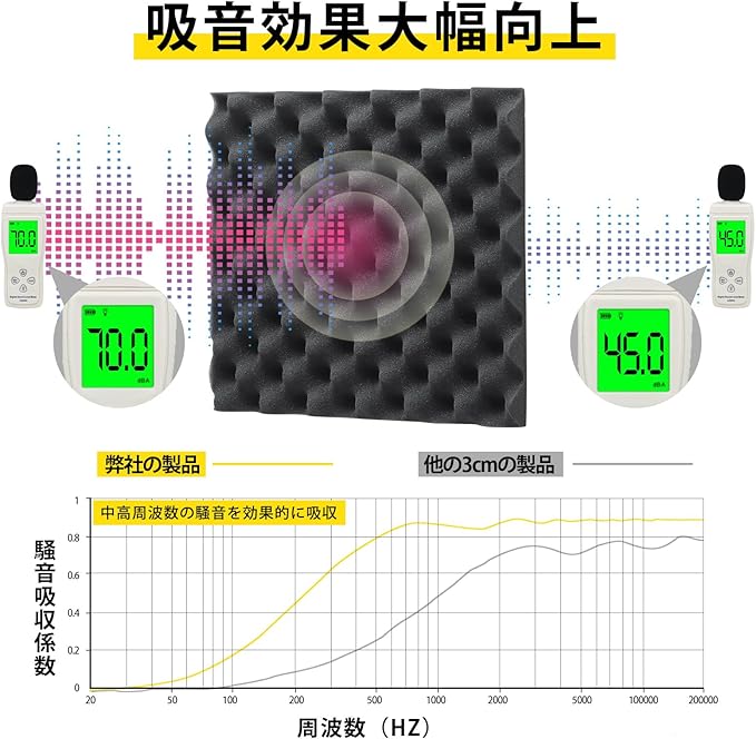スタジオクオリティのフォーム:高密度ポリウレタン音響フォームで作られたこれらの30 x 30 x 5cmのくさび形パネルは、ボーカル、楽器などのスタジオクオリティの音吸収を提供します。