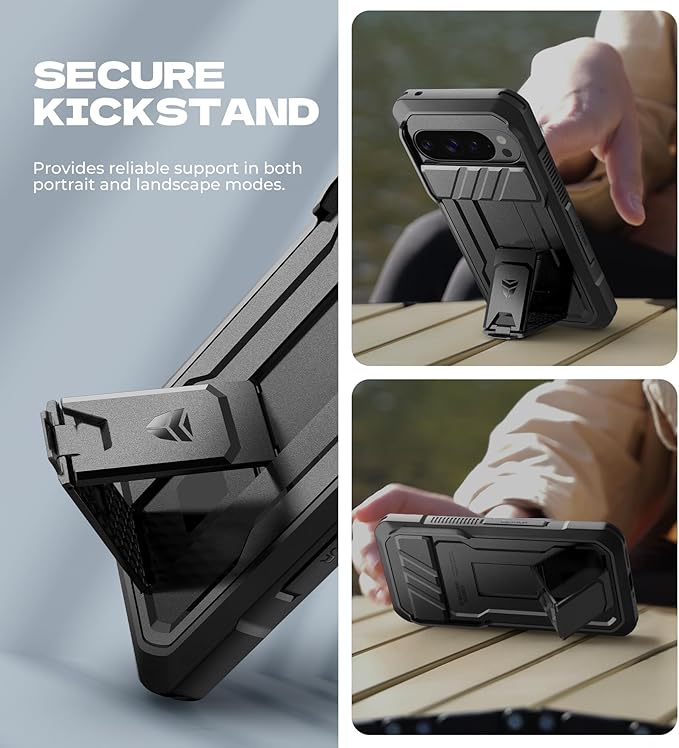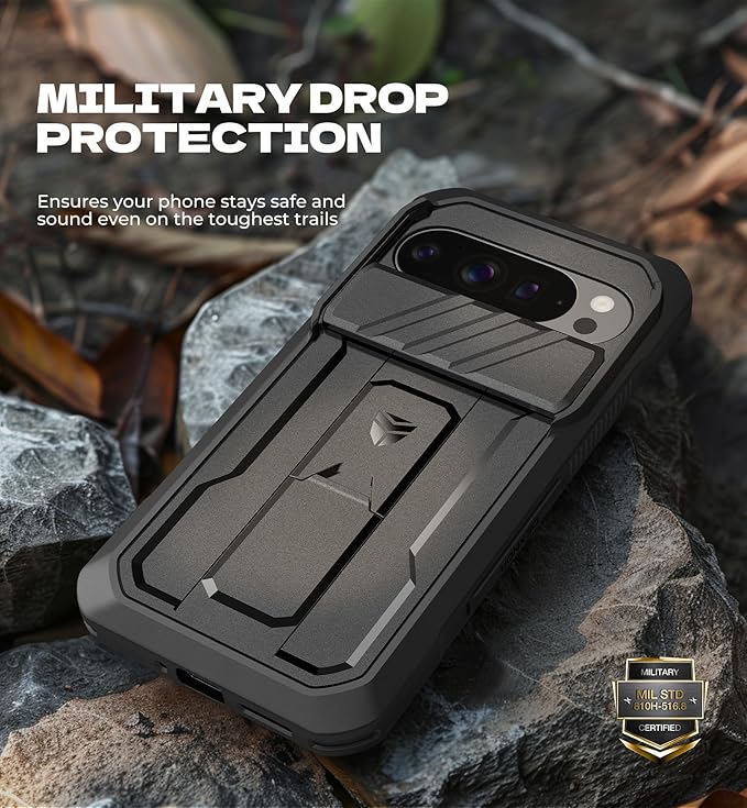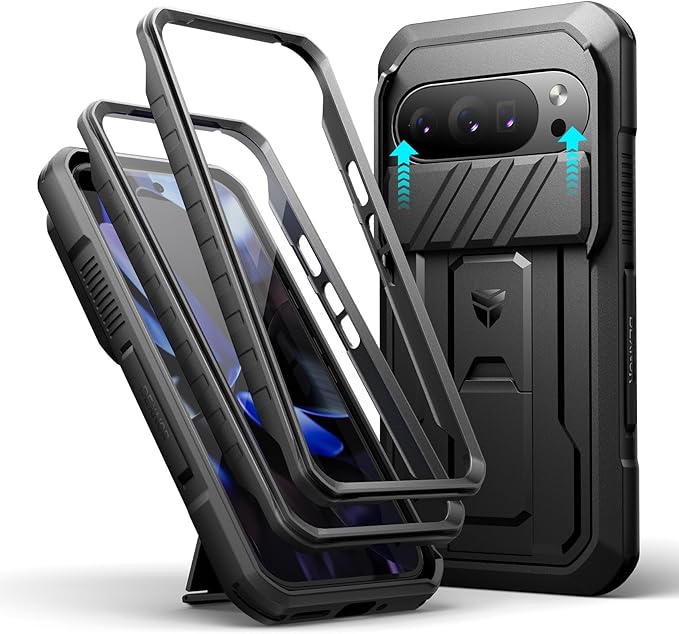Dexnor Google Pixel 10/10 Pro用 スライド式カメラカバー付きケース 2種類のフロントフレーム&内蔵画面保護フィルム&頑丈なキックスタンド搭載 耐衝撃フルボディ防護バンパーケース(ブラック) | KAZESHOP