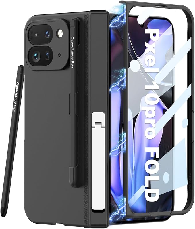Google Pixel 10 Pro Fold専用 肌触感折り畳みケース 全包囲保護&金属多角度スタンド 鋼化ガラス ペン収納付 磁気吸着ヒンジカバー ワイヤレス充電対応充電 マットの表面 薄型 軽量 レンズ保護 滑り防止 指紋防止 おしゃれ スマホ Beautycatcher - 黒 | KAZESHOP