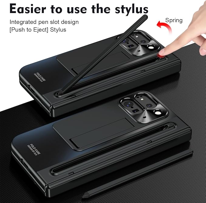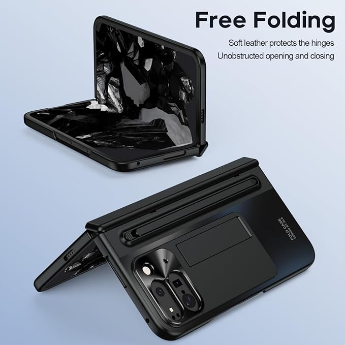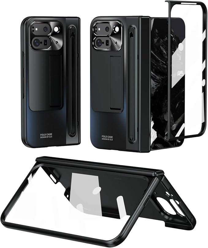 【Google Pixel 10 Pro Fold / 9 Pro Fold専用】多機能統合型 ケース 全面保護+強化ガラスフィルム+きんぞくラッカ+ペン 隠しスタンド機能 ヒンジ保護 ワイヤレス充電サポート 手帳型 携帯カバー 薄型 軽量 キラキラ 衝撃吸収 指紋防止 面白い 個性 二層構造 Beautycatcher - 黒 | KAZESHOP