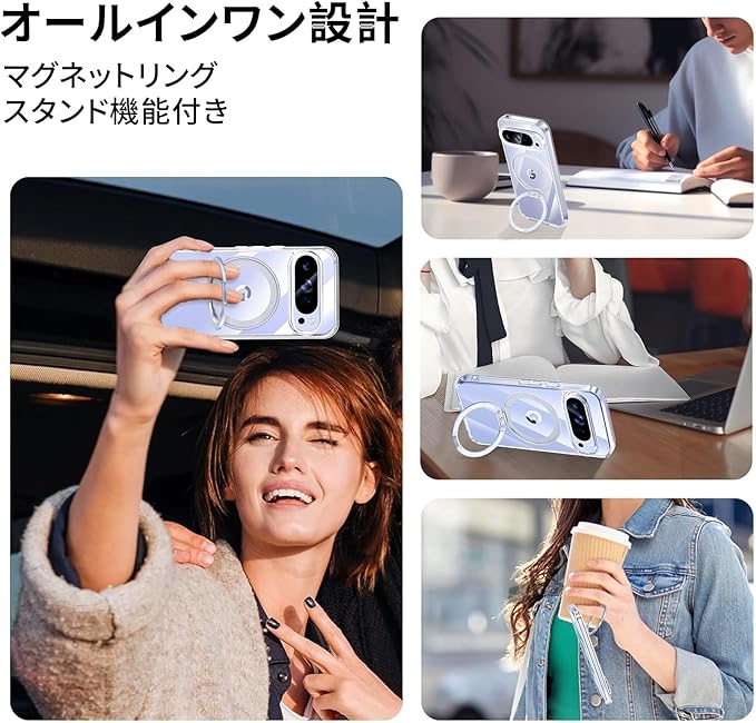 【米軍MIL規格・Magsafe対応】Google Pixel 10 / 10 Pro 用 ケース MagSafe対応 リング 360 回転スタンド機能 縦横両対応 透明 黄ばみ防止 ワイヤレス充電 レンズ保護 耐衝撃 携帯カバー グーグルピクセル10/10プロ カバー マグネット搭載 車載ホルダー マグセーフ対応 おしゃれ (クリア) | KAZESHOP