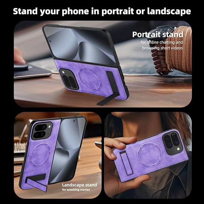 携帯ケース【Google Pixel 10 Pro Fold専用】手帳型 折畳み式スタンド 磁気対応ワイヤレス充電 超薄軽量360 保護 二重凹凸ガード 親肌荔枝紋 レザー レンズ保護 人気 独立ボタン カバー ソフトTPUフレームアル 指紋防止 可愛い 面白い スマホ 耐衝撃 豪華 おしゃれ 滑り防止 複合構造 Beautycatcher - 紫 | KAZESHOP