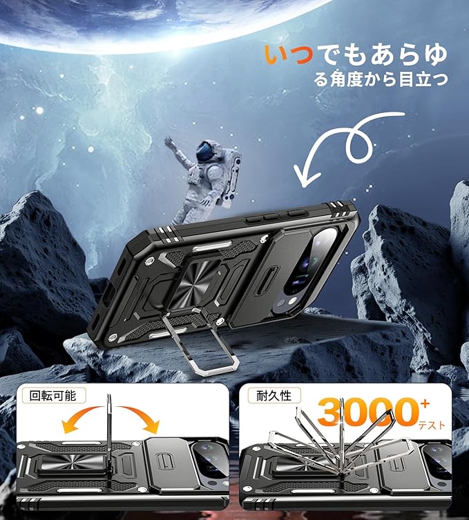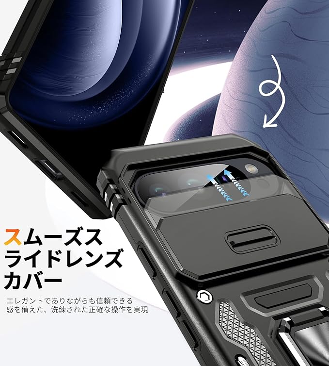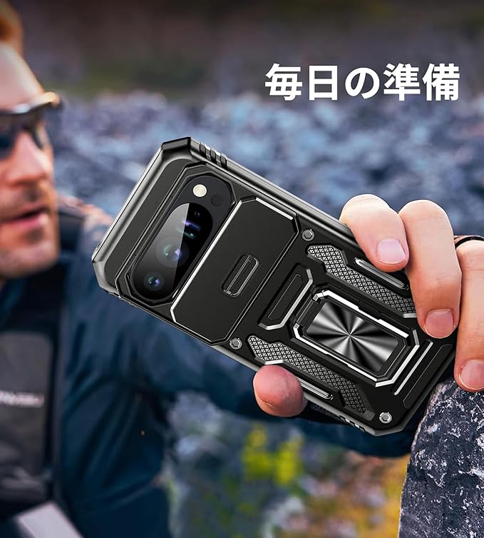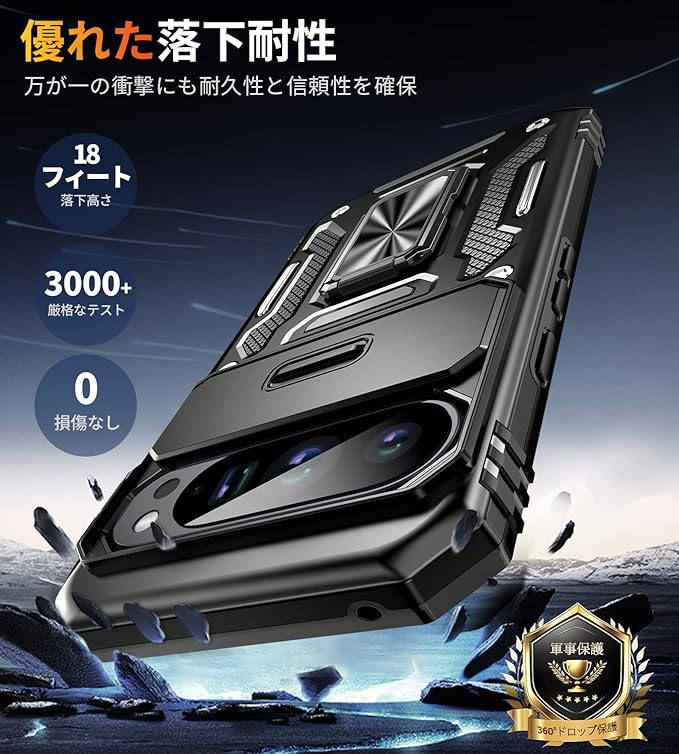 【米軍MIL規格 & スライド式カメラカバー】Pixel 10/10 Pro 用 ケース カメラ保護付【 360 回転 横縦両立・角度自由調整】指紋防止耐衝撃ヘビーデューティ 頑丈ケース 耐久性 SGS認証 Google Pixel 10/10 Pro 用 | KAZESHOP