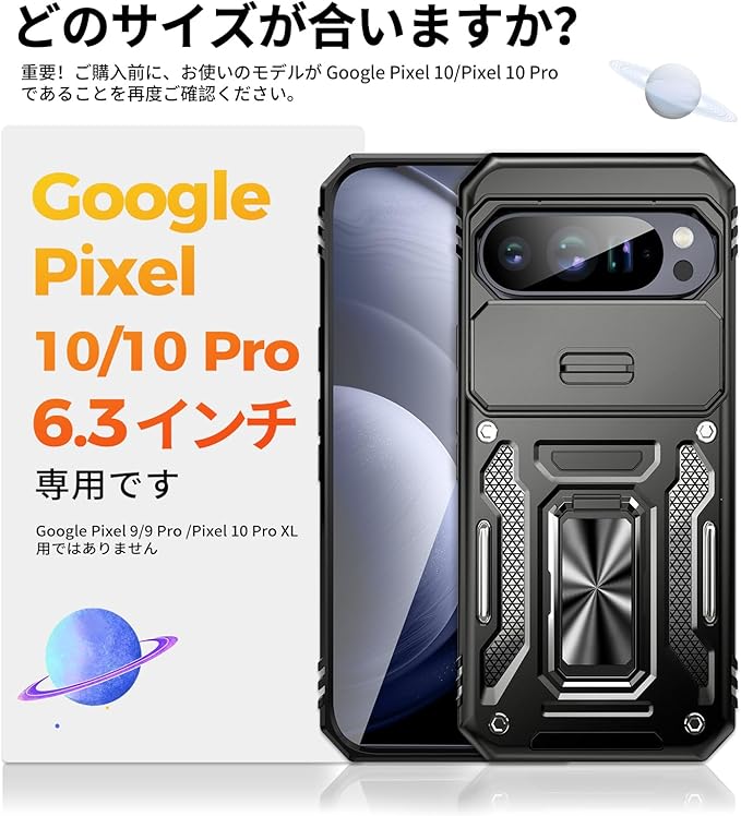 【米軍MIL規格 & スライド式カメラカバー】Pixel 10/10 Pro 用 ケース カメラ保護付【 360 回転 横縦両立・角度自由調整】指紋防止耐衝撃ヘビーデューティ 頑丈ケース 耐久性 SGS認証 Google Pixel 10/10 Pro 用