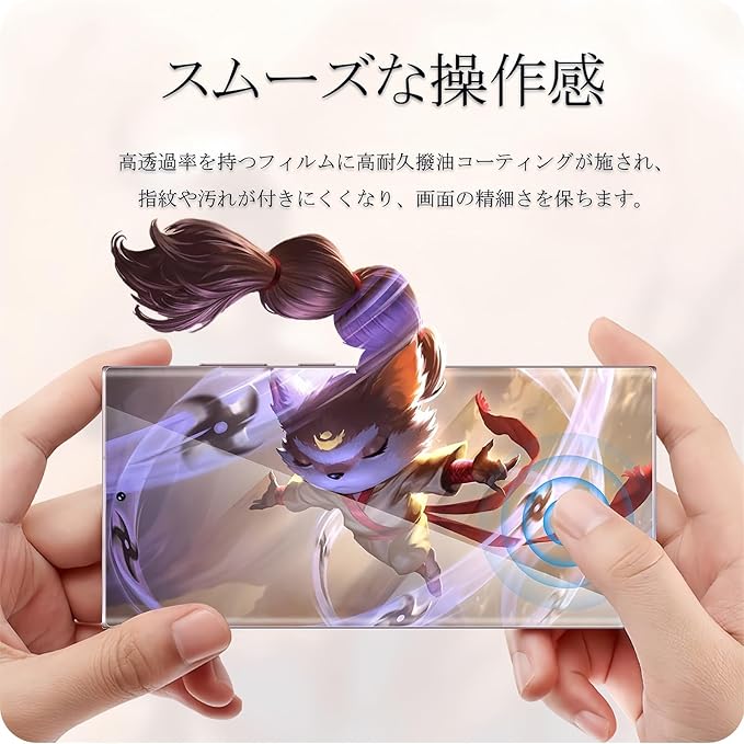 【快適な指滑り・防汚性能満点】保護フィルムの表面に特殊なコーティングを施すことで、水や油の汚れ、指紋や汚れを画面から効果的に分離し、付着しにくく、きれいな状態を保つことができます。