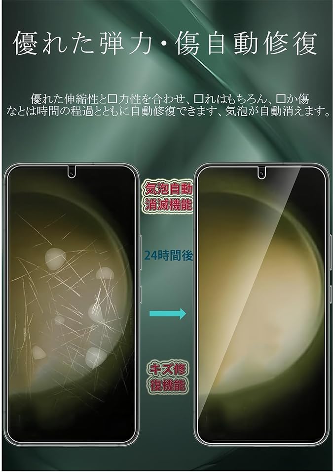 【自動修復】このスクリーンプロテクターフィルムはリバウンドが遅い技術です。 細かいキズや気泡は24時間自動補修。 フィルムを貼り付けた後も画面に気泡が残っている場合は、すぐに新しいフィルムをはがさないでください。 しばらくお待ちください。フィルムは自動的に修復されます。