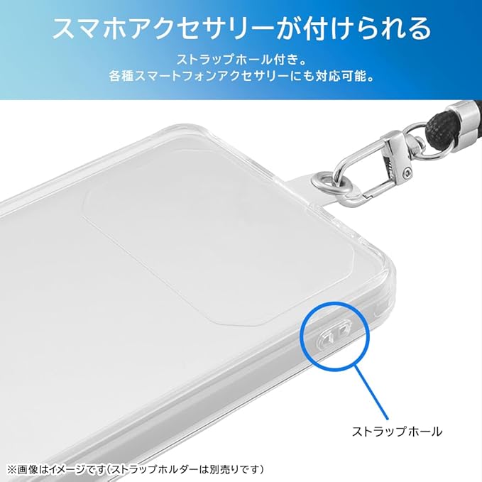 端末のデザインをそのまま活かせる、透明なハイブリッドケース。 背面には傷に強いポリカーボネート素材、側面には柔軟なTPU素材を採用し、軽さと耐衝撃性を両立しています。 フチが少し高めに作られているので、置いたときも画面やカメラが傷つきにくいです。 アクセサリーの取り付けに便利なストラップホール付き。