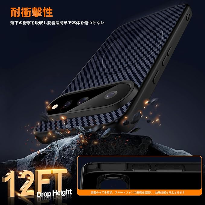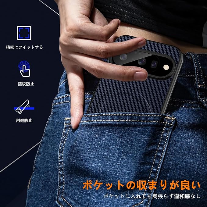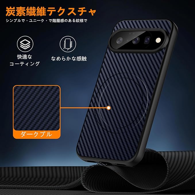 対応 Google Pixel 10 Pro 用 ケース 炭素繊維テクスチャ 薄型 軽量 耐衝撃 PC 素材 ワイヤレス充電対応 おしゃれ 指紋防止 防塵 傷防止 人気 ピクセル 10 プロ 用 携帯便利カバー ダークブルー (深い青) MD-TXCX-11-03 | KAZESHOP