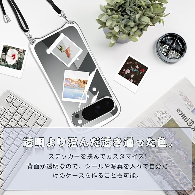 Google Pixel 10 用の ケース 10 Pro 用の ケース ショルダー ストラップ ピクセル10 / 10 Pro 用 カバー クリア 肩掛け 斜めかけ 韓国 pixel 10 / 10Pro 用の 透明 スマホケース (シルバー) | KAZESHOP