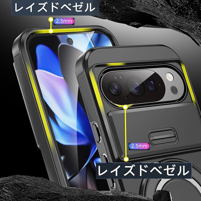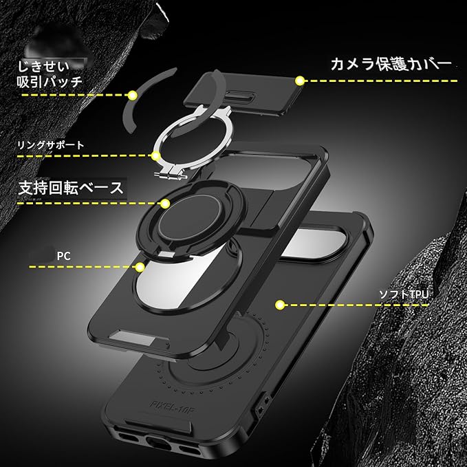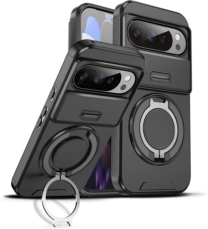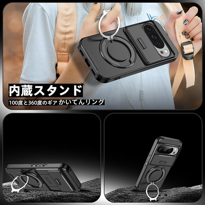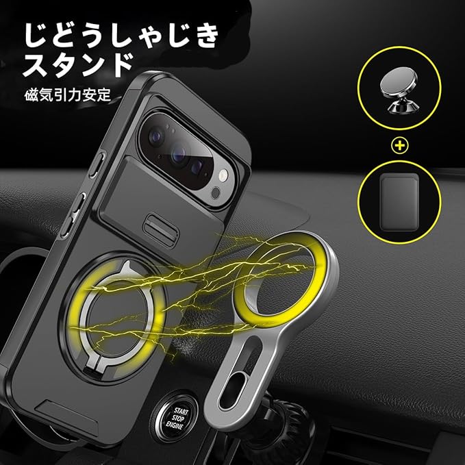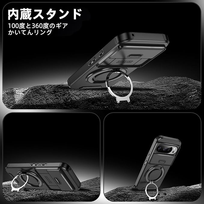 NKECXKJ Google Pixel 10 用 ケース+ グーグルピクセル10 ガラスフィルム付属 360 回転 リング スタンド機能 マグネット搭載 ピクセル10 googleピクセル10 ぐーくるぴくせる10 スマホケース 耐衝撃 スライド式 カメラ保護 背面 カバー(ブラック) | KAZESHOP