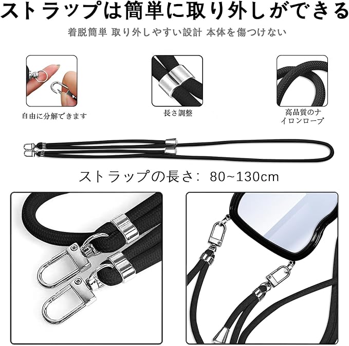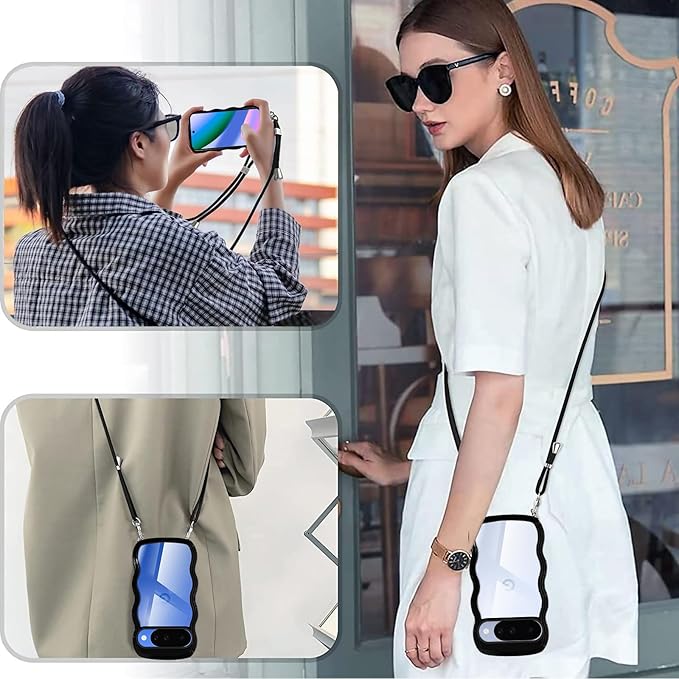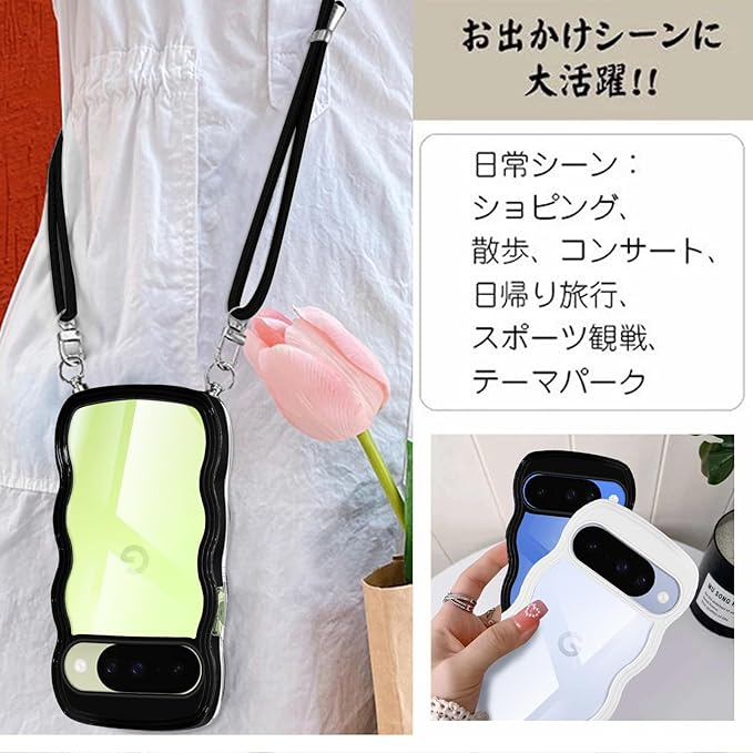 Google Pixel 10 用の ケース ショルダー Pixel 10 Pro 用の ケース クリア ピクセル10 用の カバー 斜めかけ 肩がけ 首掛け ストラップ 韓国 pixel10 用の スマホケース ブラック | KAZESHOP