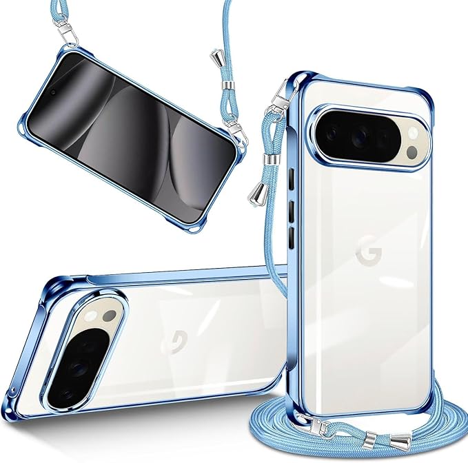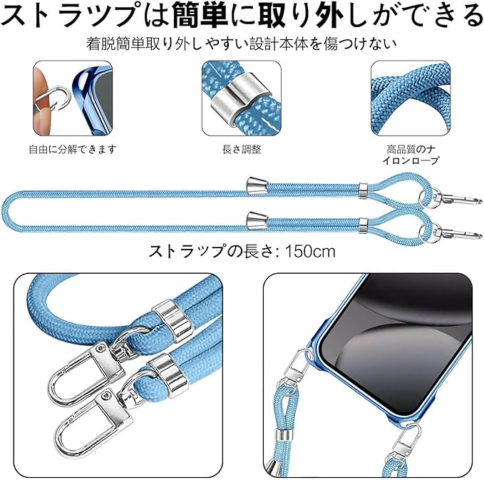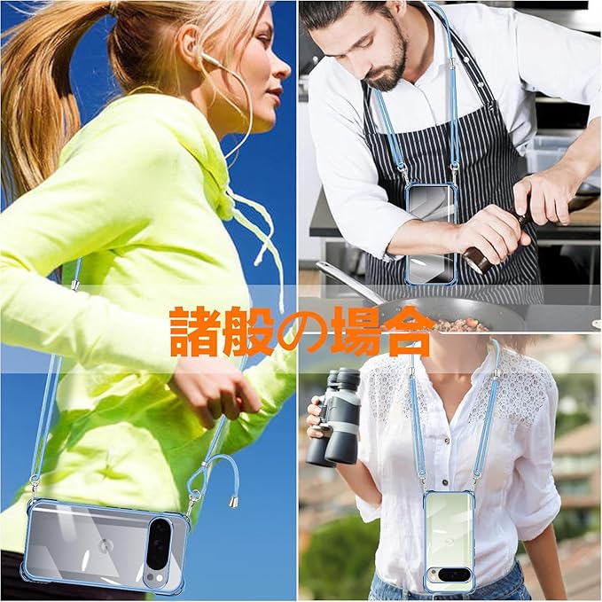 Google Pixel 10 ケース Pixel 10 Pro ケース クリア ショルダー スマホケース ピクセル 10 / 10 プロ カバー 肩掛け 縄掛け 透明 TPU 薄型 耐衝撃 携帯ケース 紐付き 斜めがけ ストラップ着脱可 縦/横 長さ調整可能 取り外し可能 落下防止 紛失防止 かわいい おしゃれ (ブルー) | KAZESHOP