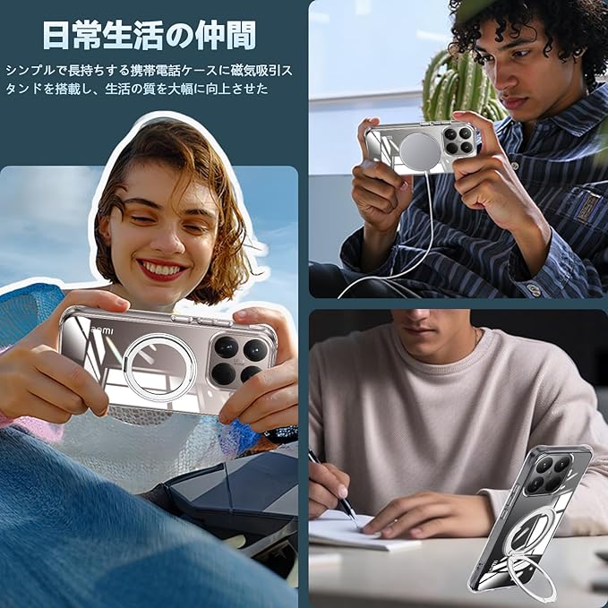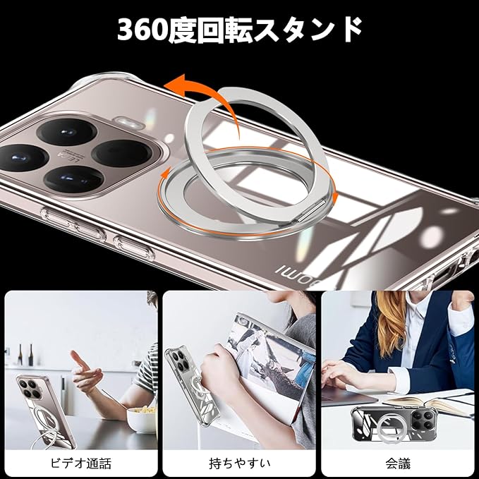 【ホルダー機能&MagSafe対応】ケース背面にホルダー機能があり、どんな平面にも気軽に置いて使用でき、映画を見ても横に楽しむことができ、縦になってオンライン学習や作業効率が高い。お好みで簡単に調節できます!最新のMagSafe充電技術に対応しており、急速で確実な充電が可能です。ワイヤレス充電のニーズに対応しながら、スタイリッシュな外観を提供します。充電中の落下や接触不良の心配はありません。充電器を正しく置く必要はありません、差し込みのいらないより簡単により素早く充電できます。スマートフォンをケースに簡単に取り付けるだけで、強力な磁気吸引機能がワイヤレス充電の利便性を十分に活用できます。