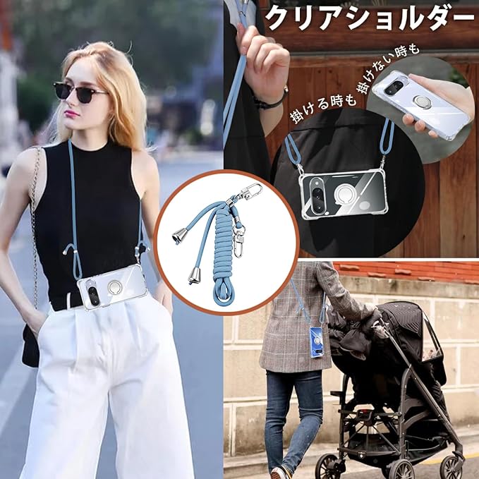 Google Pixel10 ケース クリア pixel 10 カバー ネック リング付き ショルダー 耐衝撃 対応 グーグルピクセル10 ケース 肩掛け 斜めかけ 縄掛け 透明 TPU ストラップ付き 携帯カバー 薄軽型 紐付き ネックストラップ ショルダー 肩掛け 縦/横2WAY 長さ調整可能 取り外し可能((縄掛け-アッシュブルー) | KAZESHOP