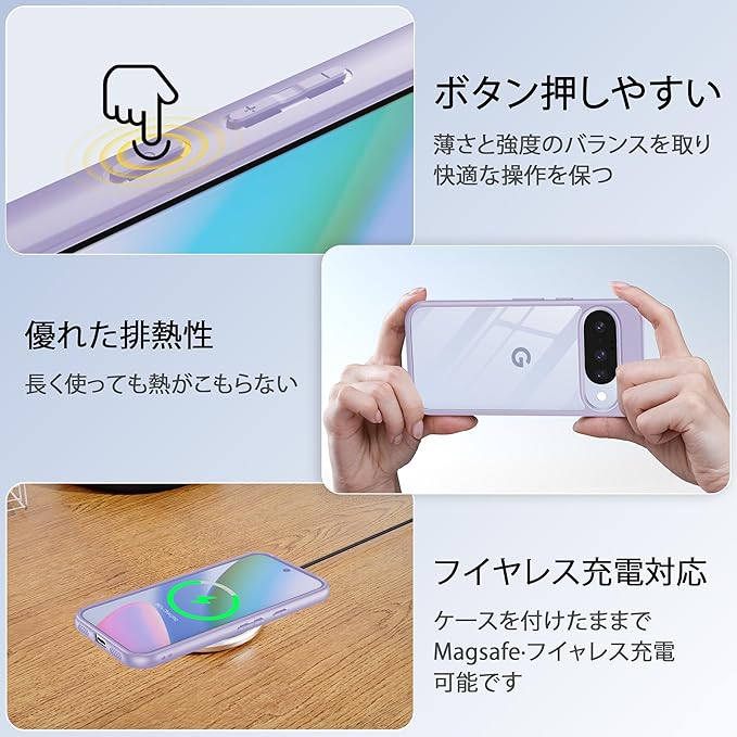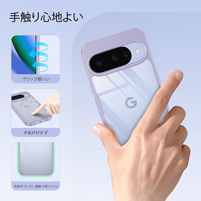 【軽量・フィット感も満点】グーグルピクセル10/10proクリアケースの保護性能を保ちながら、スマートさを損なわないよう、薄さと強度のバランスを取り、手にフィットする程よい厚みで、快適さが保ち、手に持ったときの負担もかかりません、最適な設計で作り出す。滑り止め加工したケースは持ちやすく滑りにくくて取り扱いはしやすいです。装着・脱着も簡単になります。