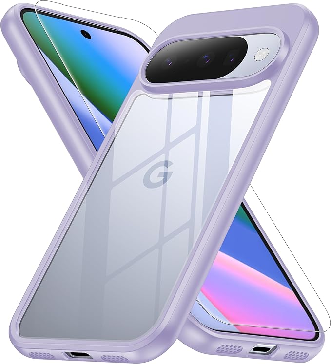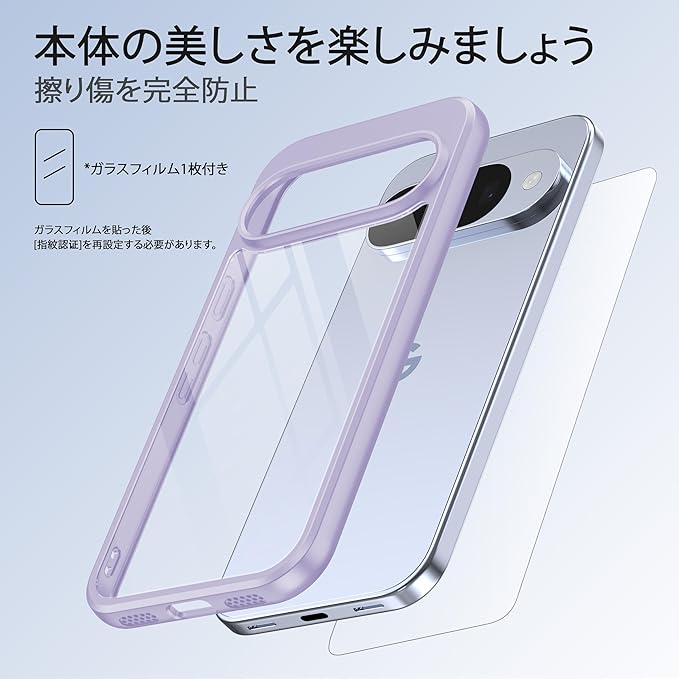 Google Pixel 10/10pro ケース 耐衝撃 ガラスフィルム保護付き pixel10ケース 米軍MIL規格 耐久性 黄変防止 薄型 ワイヤレス充電対応 ストラップホール付き ピクセル10 カバー 6.3インチ ストラップホール付き パープル AXAG | KAZESHOP