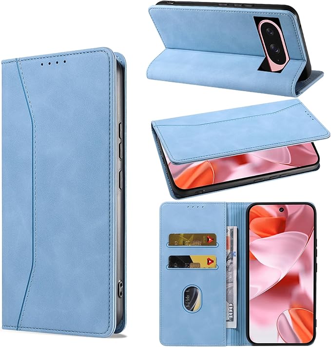 KWATUNG google pixel 10/10Pro 用 ケース pixel 9/9Pro 用 ケース 手帳型 おしゃれ グーグルピクセル10 用 ケース 手帳型 肌感レザー 内蔵マグネット 耐衝撃 カード収納 スタンド機能 googleピクセル10 用 スマホケース Pixel 9 ピクセル9プロ スマホケース Pixel 9 9Pro 10 10Pro 用 ライトブルー | KAZESHOP