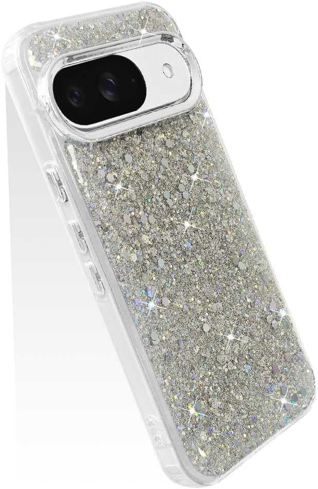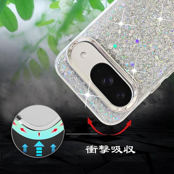 スマホケース 対応 Google Pixel 9 / 9Pro / 10 / 10Pro 兼用 ケース かわいい TPU キラキラ ブリンブリン フラッシュ おしゃれ 女性人気 美しい おもしろい キャラクター 傷防止背面 滑り止め 衝撃吸収 グルピクセル10 携帯電話カバー (シルバー) | KAZESHOP