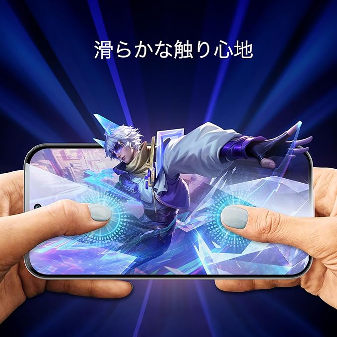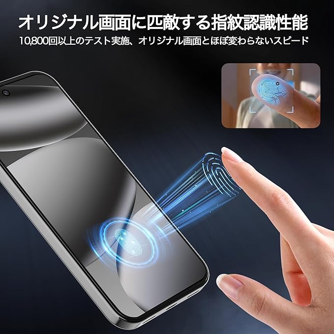 【抜群の耐衝撃性、表面硬度10H】日本製最上級AGCガラスを採用し、「イオン交換硬化」技術を通じて二次硬化を行い、従来の普通のガラスフィルムよりも高硬度化を実現しました。最先端ダイヤモンド硬化技術により、縁の硬さを全面的に高めて、最大3倍の耐傷性を達して、端末のサイドや角から落としても、画面全体を効果的に保護できます。硬い物で擦っても傷がつかず、日常的に美しく保てます。