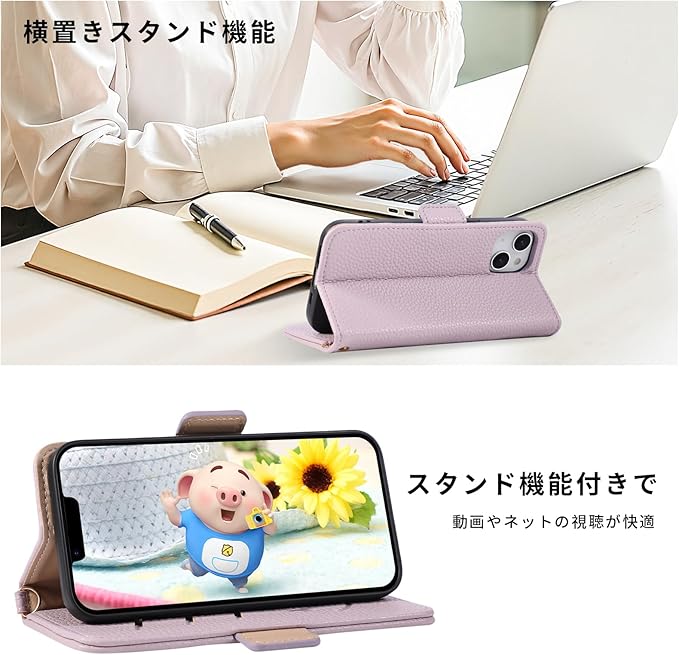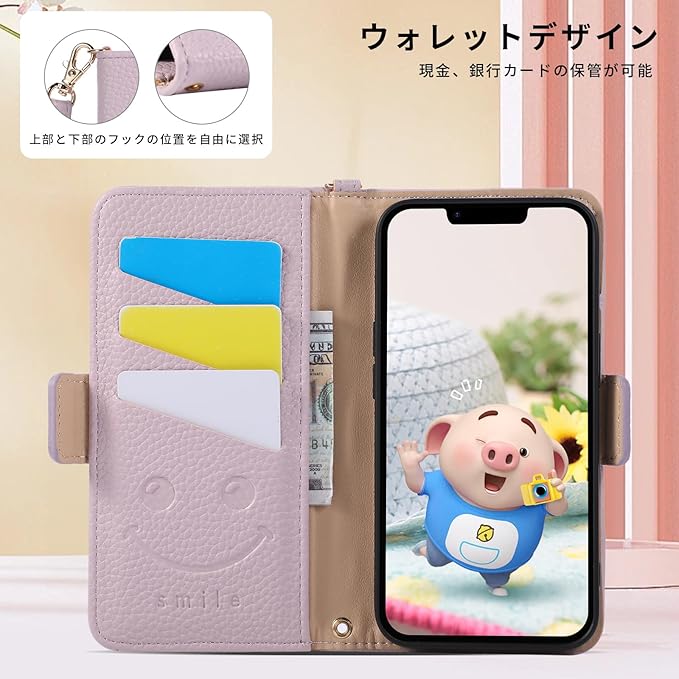 適用 ピクセル10/ピクセル9 ケース 手帳型 財布型 カバー Google Pixel 10 手帳型 ケース スマホケース かわいい漫画の豚の模様 PUレザー カード収納 耐衝撃 携帯カバー Pixel 9 マグネット スタンド機能付き5色 適用 Google Pixel 10/Pixel 9 6.3インチ対応(ライトパープル) | KAZESHOP