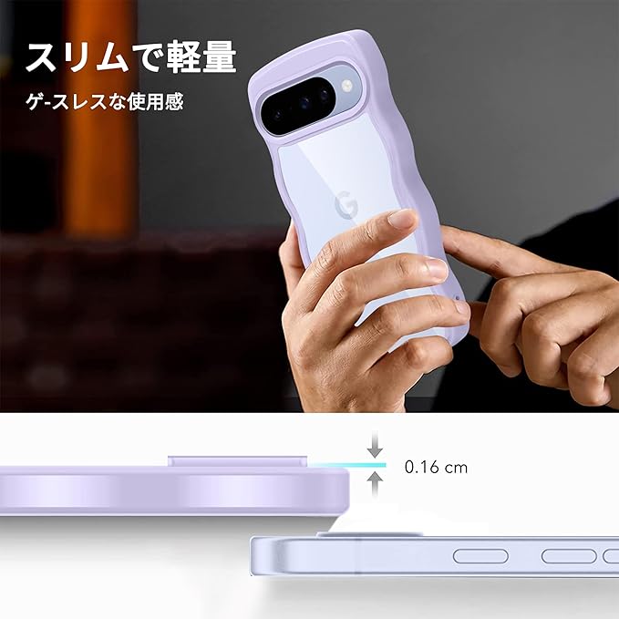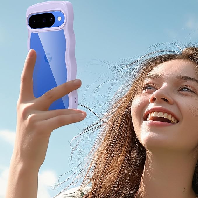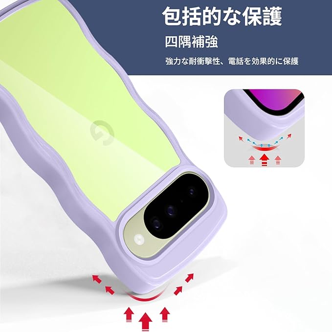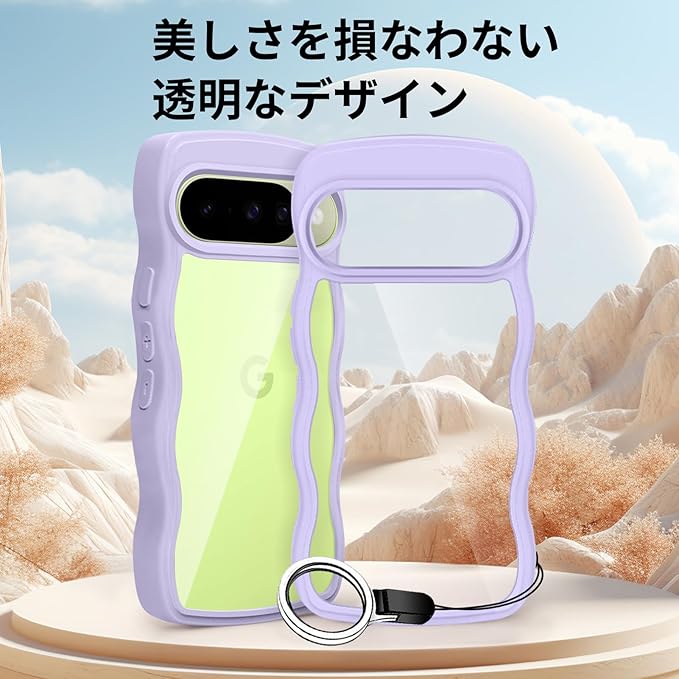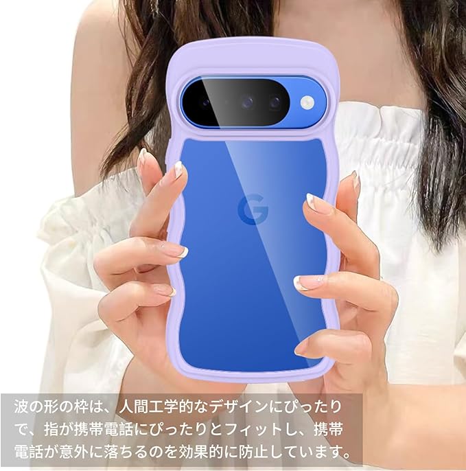Google Pixel 10/Pixel 10 Pro 用 ケース クリア ピクセル 10/10 Pro スマホケース 波状フレーム かわいい pixel10/10pro カバー 女性用 女子向け 耐衝撃 滑り止め 薄型 軽量 透明 TPU 落下防止 ワイヤレス充電対応(パープル) | KAZESHOP