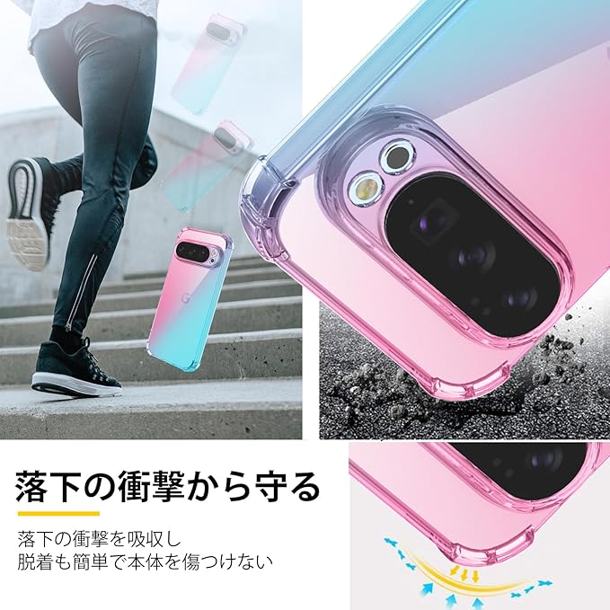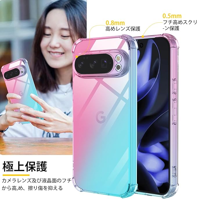 対応 Google Pixel 10 ケース Google Pixel 10 Pro 用 ケース クリア TPU 薄型 軽量 グーグルピクセル10/10pro 専用 グラデーション色 耐衝撃 ストラップホール付 米軍MIL規格取得 滑り止め 黄変防止 防塵 一体型 人気 携帯カバー ワイヤレス充電対応(ピンクグリーン) | KAZESHOP