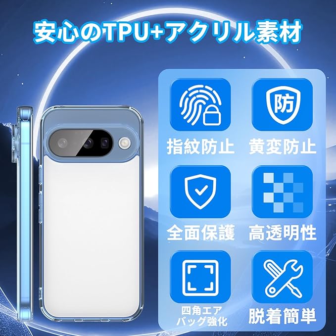 [HinZann] Google Pixel 10 5G専用 TPU スマホ ケース クリア 防指紋 耐衝撃 角強化 超薄軽量 防黄変 ストラップホール付き 耐久性 カバー ケース Google Pixel 10 5G 用 - クリアブルー | KAZESHOP