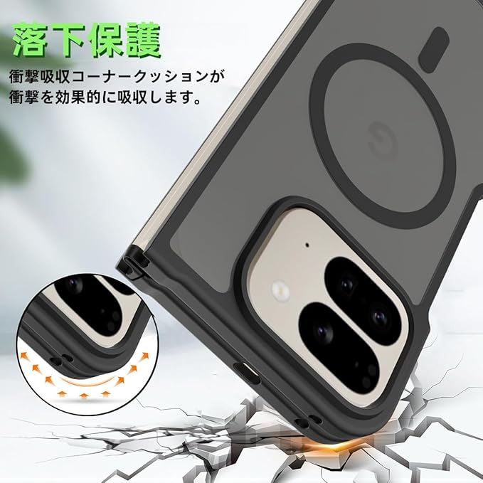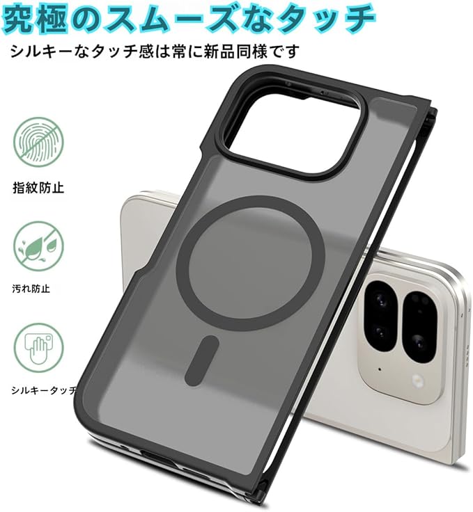 対応Google Pixel 10Pro Fold クリアケース【無線充電/PC背面 + 柔らかい TPUバンパー】全面保護カバー マット感 指紋防止 擦り傷防止 衝撃吸収 すり傷防 カメラ保護 背面 ンプロテクター シェル 軽量 薄型 【マット 半透明 Pixel 10 Pro Fold 5G 折りスマホケース 黄ばみなし】シンプル レンズ保護 高耐久性 脱着簡単 4色 ブラック | KAZESHOP