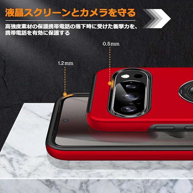 Google Pixel 10 Pro XL 対応 ケース リング 耐衝撃 米軍MIL規格取得 TPU+PC 衝撃吸収 カバー レンズ保護 リングつき 指紋防止 360 回転 車載ホルダー対応 スタンド機能 防塵 薄型 落下防止 擦り傷防止 Pixel 10 Pro XL 携帯電話カバー 赤C85-pix10pxl-02 | KAZESHOP