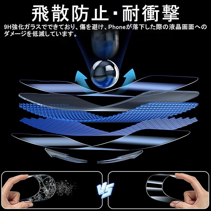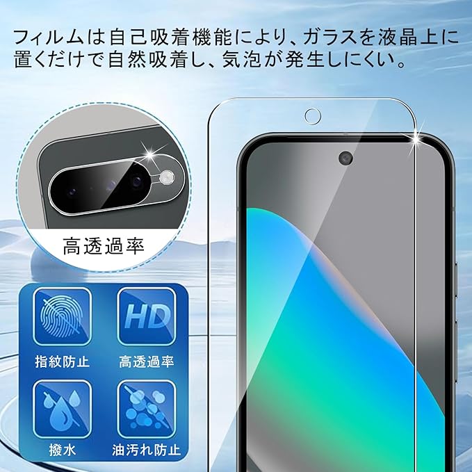 【耐衝撃】表面強度9H強化ガラスを採用し、生活中の様々な傷からフォンを保護します。pixel 10フィルム表面には耐粉砕フィルムコーティングの加工も施されており、割れても破片の飛散を良好に抑制して傷付きを防止することができます。
