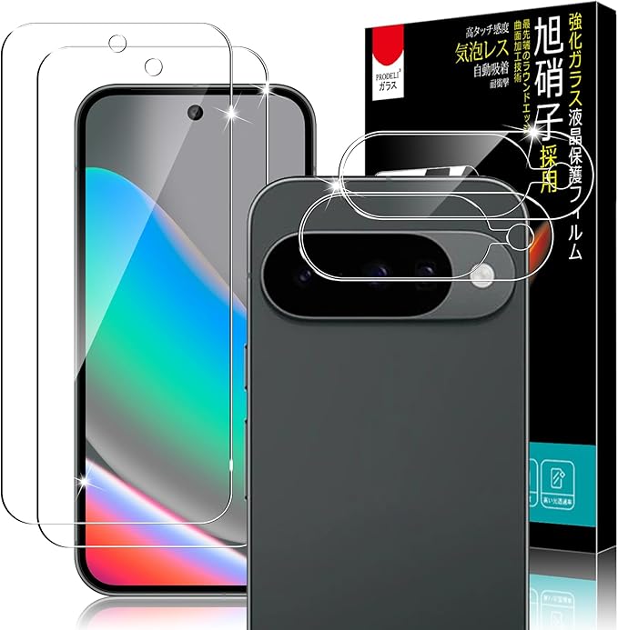 PRODELI For Google Pixel 10 専用 ガラスフィルム (2枚) + カメラフィルム (2枚) 硬度9H 高透過率 耐衝撃 自動吸着 2.5Dラウンドエッジ 強化ガラス 気泡無し グーグルピクセル10 用 保護フィルム【4枚入り】 | KAZESHOP