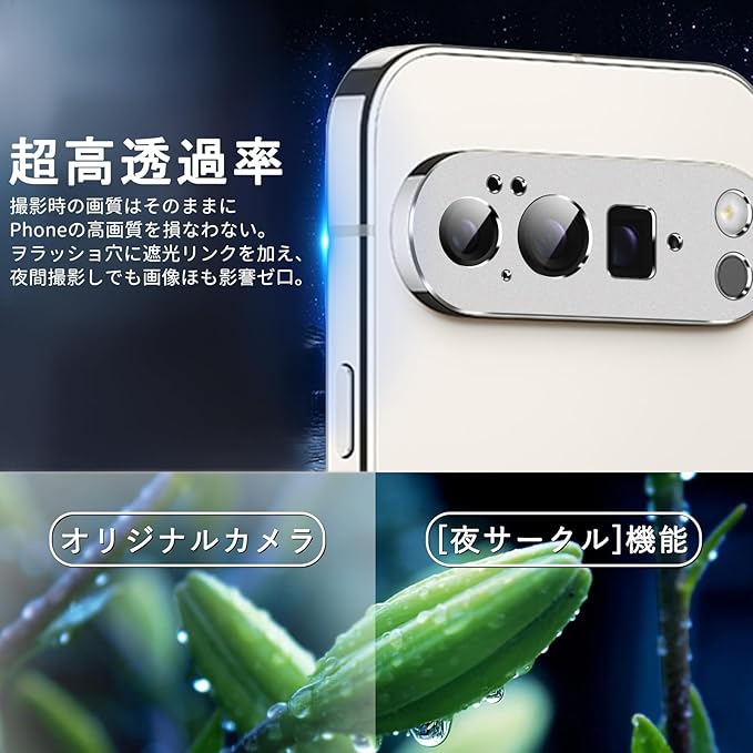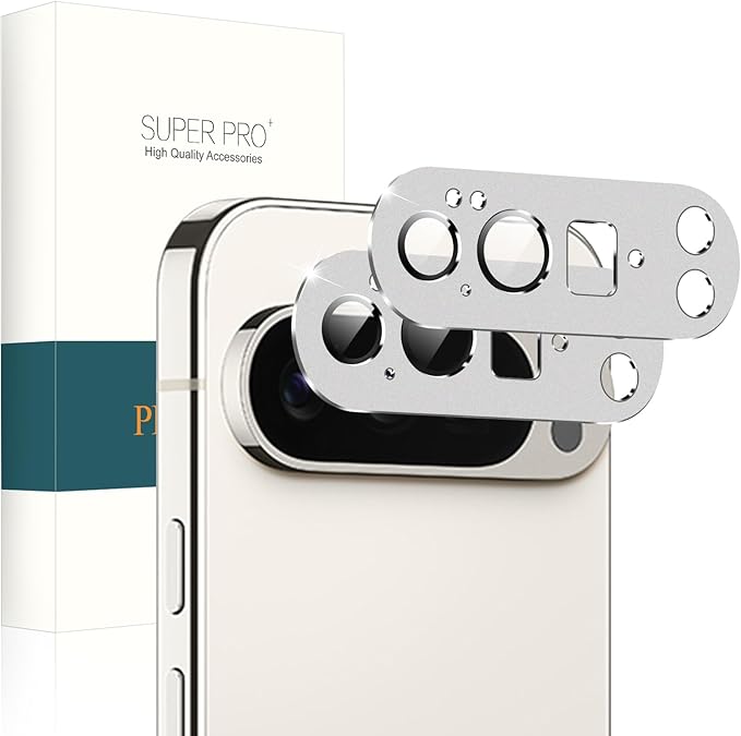 PRODELI For Google Pixel 10 Pro 専用 カメラフィルム アルミ合金製+AR高透過率 一体型 硬度9H キズ防止 高透過率 耐衝撃 強化ガラス 気泡ゼロ 露出オーバー防止 防爆裂 ケースに干涉なし ピクセル10 pro 用 レンズ 保護フィルム (シルバー/2枚入り) | KAZESHOP