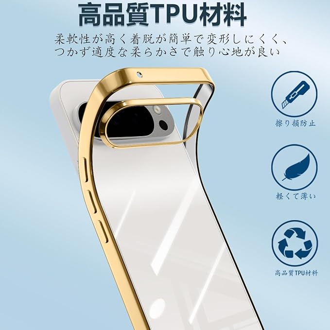Google Pixel 10 / 10 Pro ケース クリア 薄型 TPU 耐衝撃 ソフト 黄変防止 指紋防止 ストラップホール付き グーグルピクセル 10 / 10 Pro カバー ワイヤレス充電対応(ゴールデン) | KAZESHOP