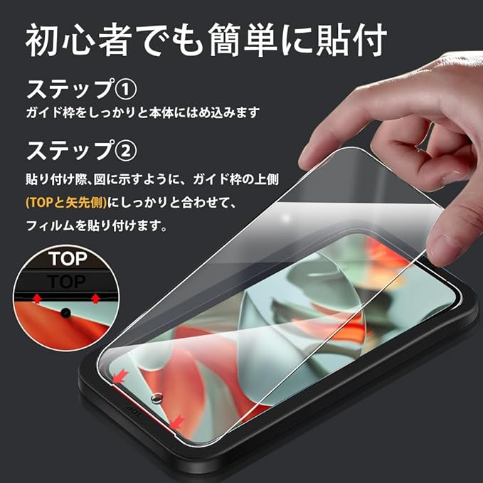 【対応機種&包装内容】 Google Pixel 9 pro XL 専用ガラスフィルム。強化ガラスフィルム【2枚】+カメラフィルム【2枚】+位置決め用のガイド枠【1個】+日本語取扱説明書+貼り付けキット。携帯電話の画面からレンズまで二重の保護,予備用・ご家族、友人とシェアしてもお使いいただけます!貼り付けキットは取付けをより容易にすることができ、インストール プロセスで泡を作り出しません、ご安心をご購入ください。位置決め用のガイド枠が付属していますので、ガラスフィルムをスクリーンに揃えるのが簡単になります。画面に置くだけでキレイに貼れ、気泡が入りづらく、初心者でも一発で簡単に貼ることができます。※ご注意:貼り付けの際に、万が一少しの気泡や浮きが出てきた場合は、布を指に巻いて少しずつ押し出せば抜けます。もし、それでも解決できなかったら、フィルムを端から気泡や浮きのところまで慎重に爪で押し上げ、引き続きゆっくりと下ろし貼り付けても、解決できます。