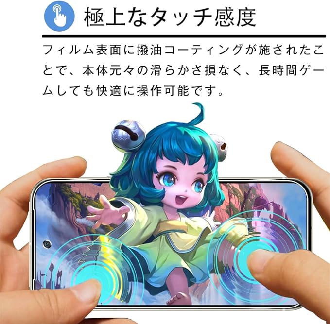 【快適な指滑り&指紋防止加工】Google Pixel 9 pro XL 保護フィルム表層高密度素材から本体との密着で、より速く、より滑らかなタッチ感を実現。指の滑りは何も貼っていないくらい良く、流水みたいな流れで高速文字入力も支え、指から心までその抜群な使い心地を感じられます。特殊コーティング処理で、指紋の付着を軽減、日常生活での汚れや油脂などもティッシュなどで軽く拭くだけでとれます。元々の画質が損なわれません。