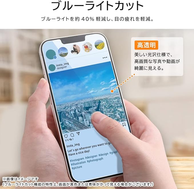 特徴 ブルーライトブロック, 耐傷性, 耐汚性, 高精細な鮮明度