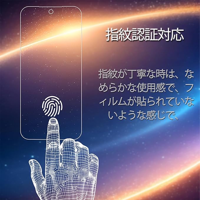 【極上の透過率】フィルム 極めて高い透過率で、ディスプレイ内蔵の指紋センサーに干渉せず。美しい形状にぴったりフィット、端末の画面の美しさを損なわない高透明度を再現できます。 高光沢フィルムでディスプレイもすっきり鮮やかな印象に。
