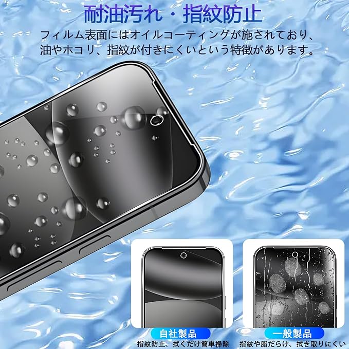 【耐油汚れ・指紋防止】撥水・撥油加工で指紋や皮脂の付着を防げ、画面を鮮やかに彩ります。フィルムの表面はハードコート加工、オイルコーティング加工、スムースタッチ加工といった様々な特殊加工を組み合わせ油分やほこり、指紋に対しての抵抗力が非常に強くなったので、スマホをずっときれいなボディーを保持させ、頻繁にスマホを拭く悩みがなくなります。