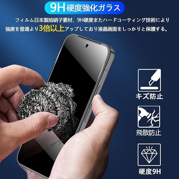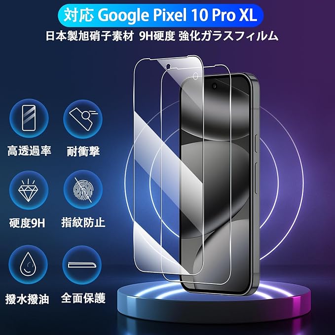 【日本製素材旭硝子製・耐衝撃性、飛散防止でさらに安心!】 対応 ピクセル10 Pro XL 保護フィルム 日本製旭硝子素材、9H硬度。ポケットの中の鍵やコインなど、様々なものからスマートフォンを保護します。 またハードコーティング技術により、強度を普通より3倍以上アップしており、により外部からの衝撃をフィルムが吸収し、画面へのダメージを最低限まで抑えました。防爆、耐スクラッチ性、落下防止。特殊な飛散防止設計により、万一割れてしまった際にも飛散することなく、高い安全性を実現します。長く安心して使えます。