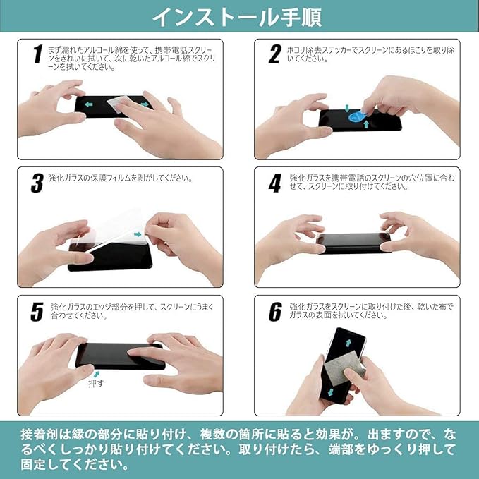 特徴 日本旭硝子製(AGC)、9H硬度、キズ防止、 耐衝撃、飛散防止、 全面保護、99%透過率、高感度タッチ、指紋防止、 気泡ゼロ 、自動吸着 、ラウンドエッジ加工、貼り付け簡単