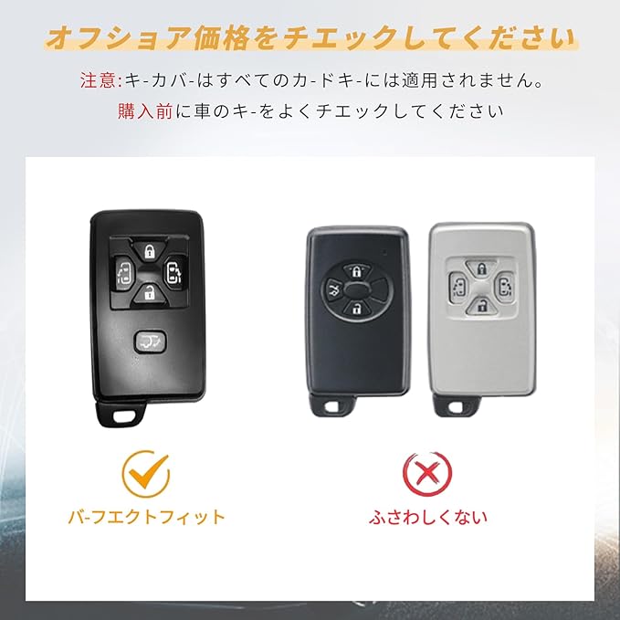 【適応車種】:・エスティマ ・ノア 60系70系 ・ヴォクシー 60系70系 ・アルファード ・ヴェルファイア ・アイシス ・オーリス ・ist ・アリオン ・マークXジオ ・など 同車種でも年式によりスマートキーの形状が異なる場合がございます。お使いのスマートキーの形状を必ず確認ください(写真参照)。※上記車種以外でも鍵の形状が合えば取り付け可能になります。