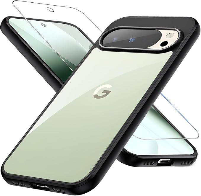 Google Pixel 10 Pro XLケースクリア ガラスフィルム付き グーグルピクセル10Pro XL カバー 黒色TPUフレーム + 透明PCバックパネル 2重構造 耐衝撃 米軍MIL規格 レンズ保護 滑り止め 透明 指紋防止 ストラップホール付き 黄ばみ防止 ピクセル10 pro xlカバー クリア | KAZESHOP